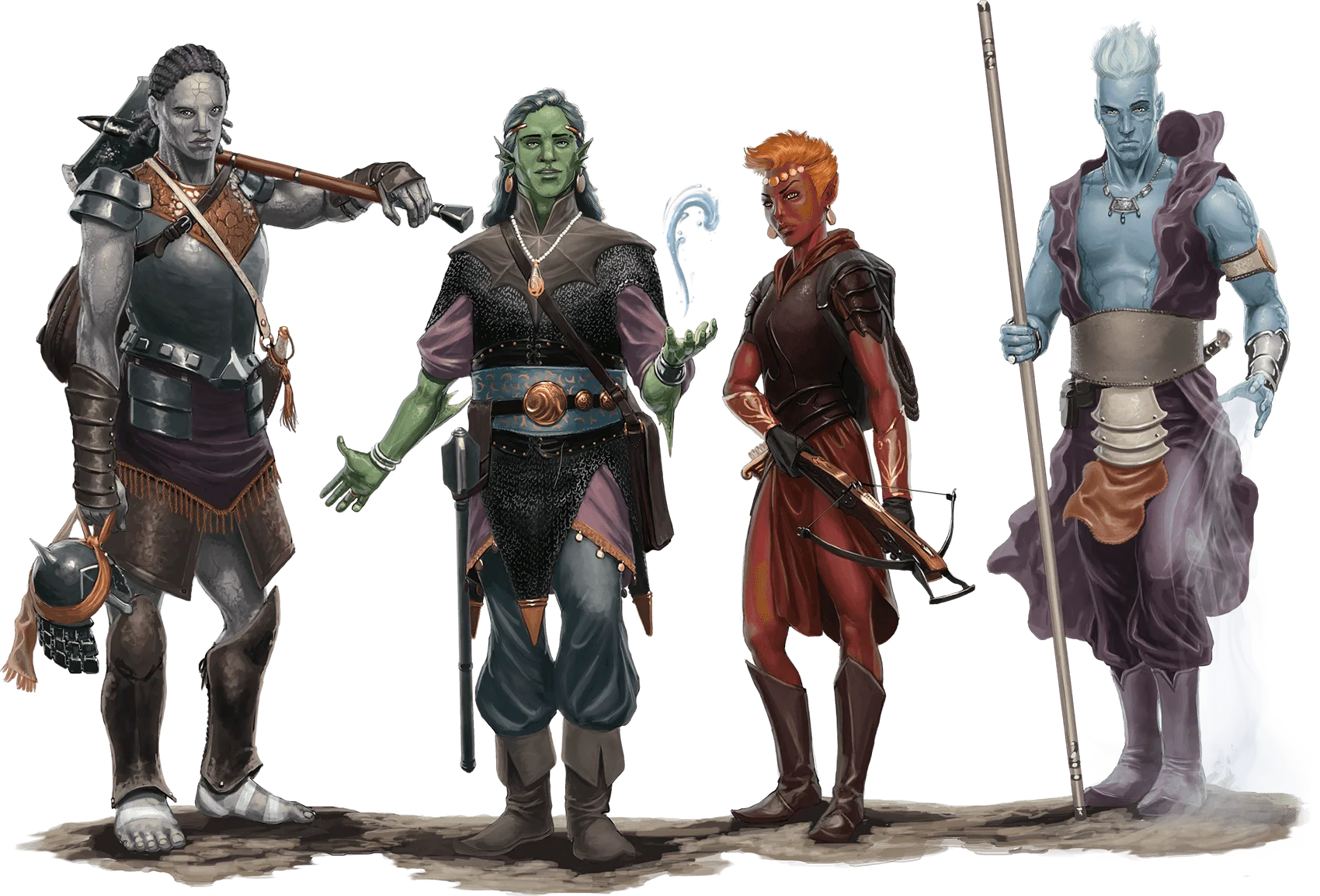 Tracing their ancestry to the genies of the Elemental Planes, each genasi can tap into the power of one of the elements. Air, earth, fire, and water—these are the four pillars of the Material Plane and the four types of genasi. Some genasi are direct descendants of a genie, while others were born to non-genasi parents who lived near a place suffused by a genie's magic.